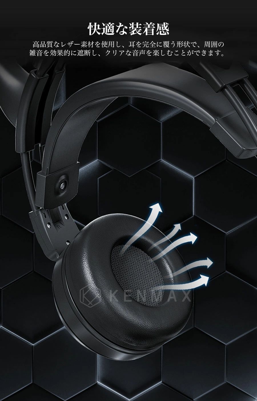 高品質なレザー素材を使用し、耳を完全に覆う形状で、周囲の雑音を効果的に遮断し、クリアな音声を楽しむことができます。