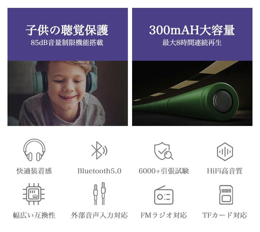 【折り畳み式&付け心地よい】全体はプロテインレザーエコ材料採用され、人体工学に基づいて外観、子供の耳をやさしく守る、安全に配慮した低感度設計。頑丈で耐久性が高く、ねじったりしても壊れることがありません。クッションイヤーパッドは快適かつ頑丈。また頭の大きさに合わせて手軽にヘッドバンドを調整ができます。折りたたみ式で持ち運びやすい、本体は頑丈で耐久性が高くて、何万回折りても壊れにくい構造となっています。