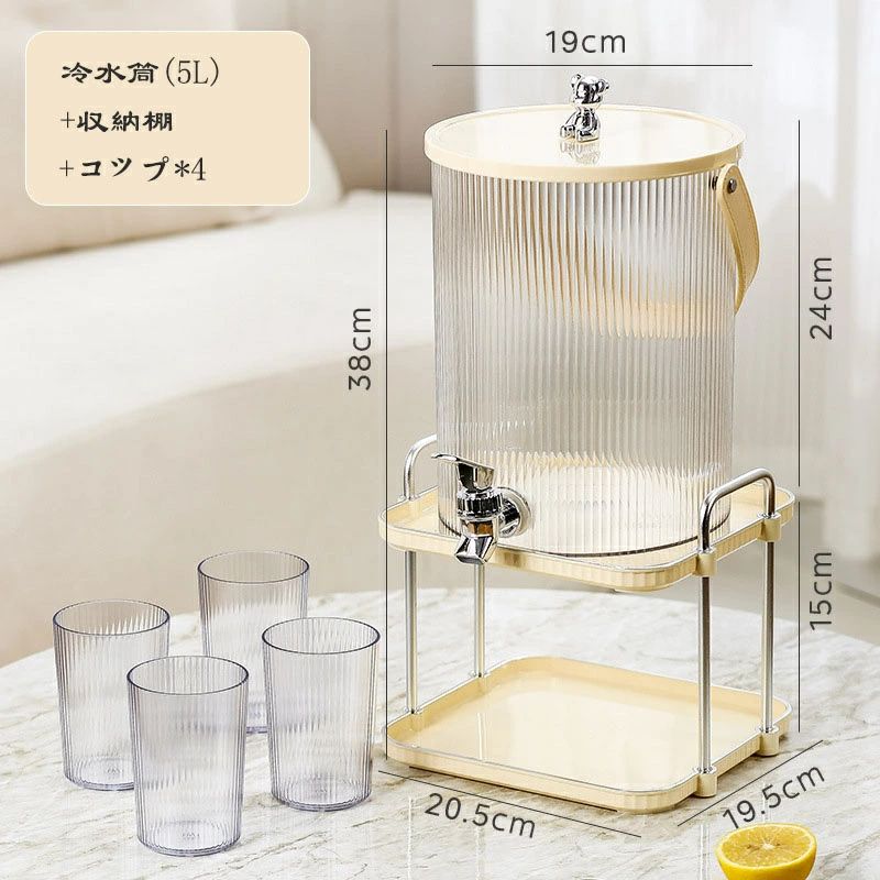 冷水ポットセット 蛇口付き コップ4個 コーヒー お茶用品 ピッチャー 冷水筒 豊富 5L 3.5L