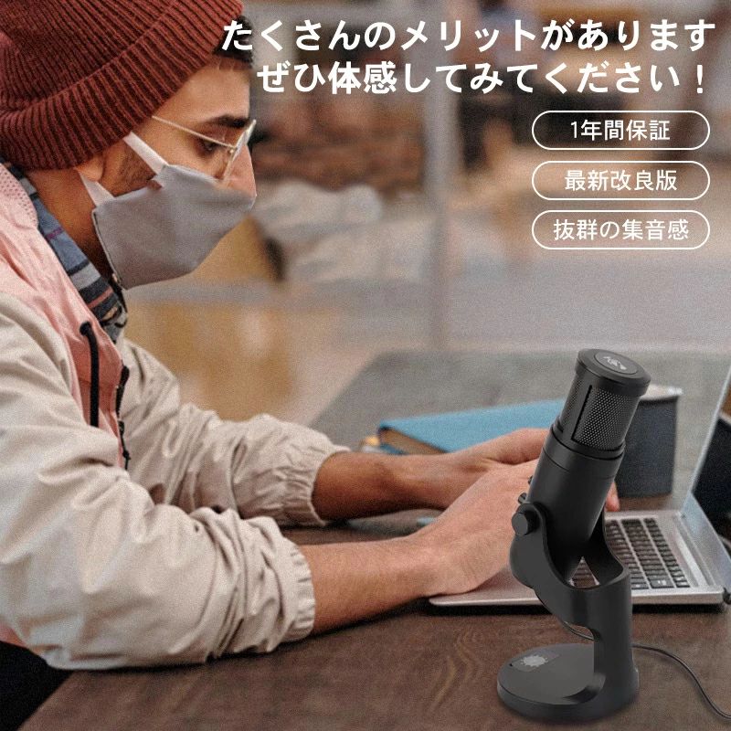 USB端子搭載のPCマイクは、パソコンやデスクトップなどに直接繋げられます。Youtube、Zoom、録音やゲーム実況を始めている初心者に最適です。ゲイン調整ノブが搭載し、状況に応じて音量の大きさを調整できます。