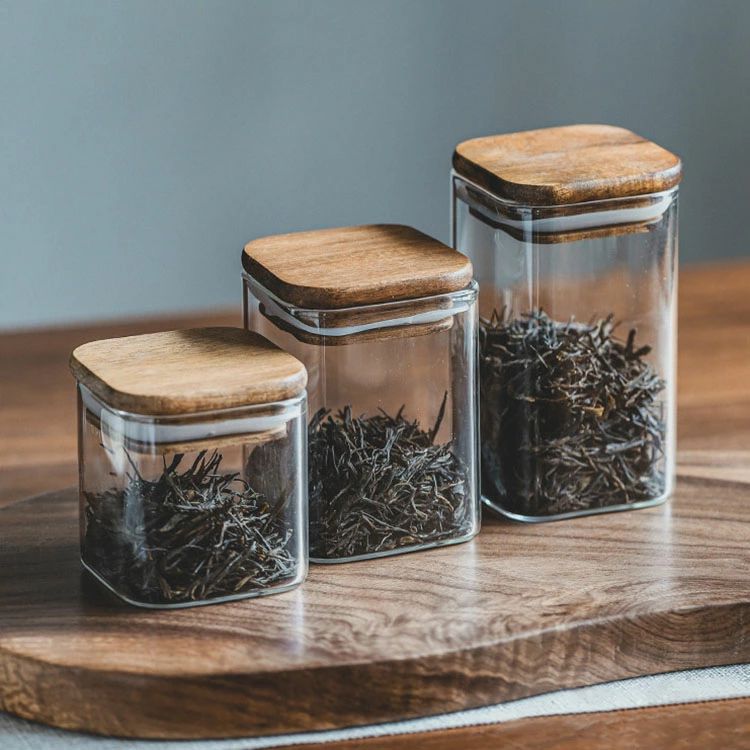 ガラスキャニスター 天然木の蓋 珈琲キ 保存容器 調味料入れ 保存容器 キャニスター 超目玉商品 写真色(150ml) 写真色(200ml) 写真色(250ml) 写真色(300ml)