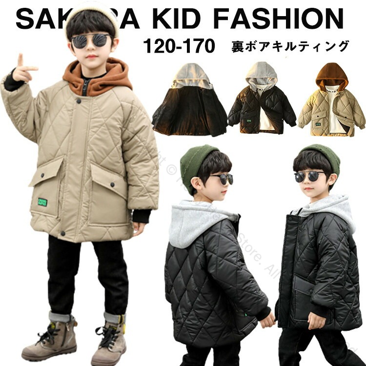 ブラック 黒 カーキ 韓国子供服 韓国子ども服 韓国こども服 キッズ こども 子ども 子供 子供用 子供服 キッズ服 キッズサイズ ジュニア 小学生 男の子 アウター コート ジャケット キルティング 裏起毛 裏ボア ボア 防寒 防風 防寒着 防寒対策 寒さ対策 極暖 ぽかぽか もこもこ あったかい 暖かい 温かい あったか あたたかい ふわふわ もこもこ ふんわり 寒い さむい ロングコート ロング丈コート ロング丈 ロング 膝上 ひざ上 膝丈 ひざ丈 長袖 長そで 十分袖 十分そで 10分袖 フード付き フード スウェット 大きいサイズ 大きい ゆったり 大きめサイズ 大きめ サイドポケット ポケット 前開き フロントファスナー ファスナー ジッパー カジュアル ナチュラル おしゃれ オシャレ 可愛い かわいい シンプル 秋 秋服 秋物 冬 冬服 冬物 秋冬 服 新作 新着 サクラ SAKURA