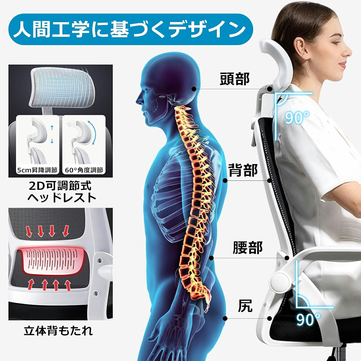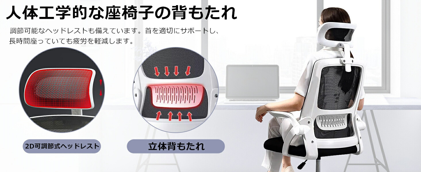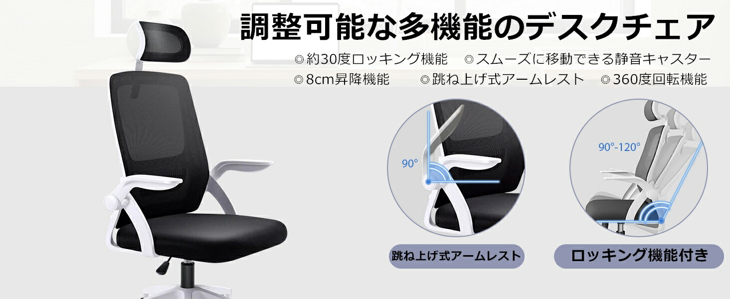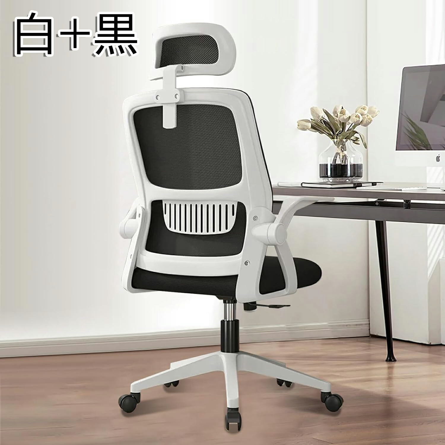 オフィスチェア 椅子 テレワーク 疲れ 白+黒 白+グレー 黒