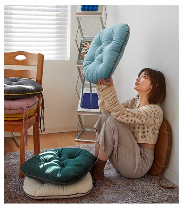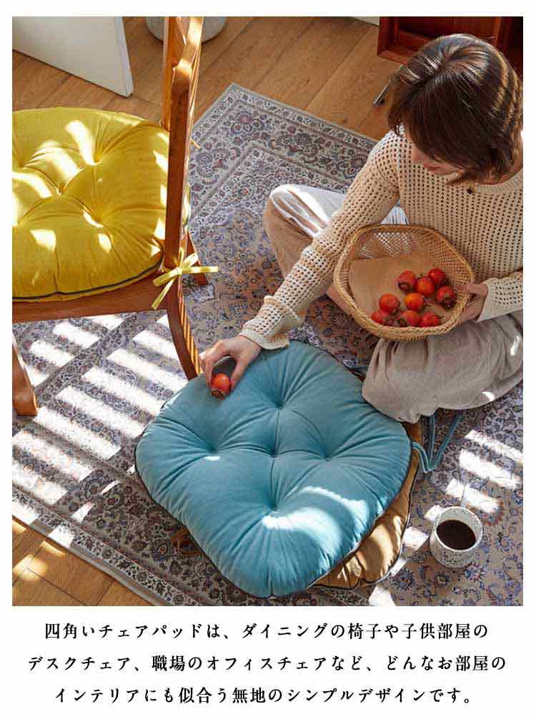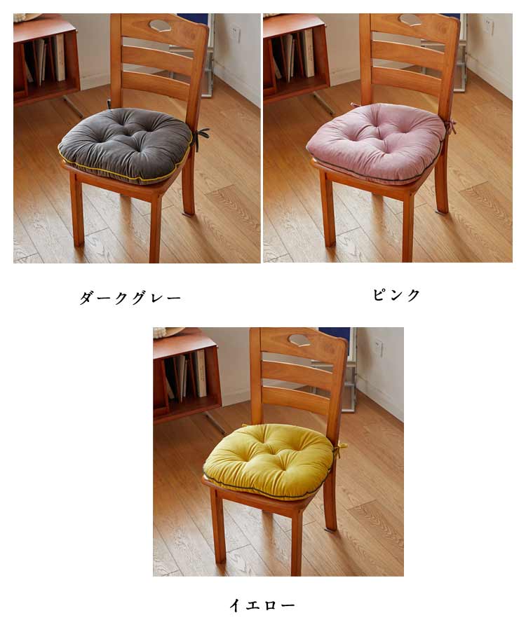 座面 紐付き チェアパッド イス ダイ ダークベージュ ブルー グリーン ホワイト ダークグレー ピンク イエロー 42×40cm 48×45cm
