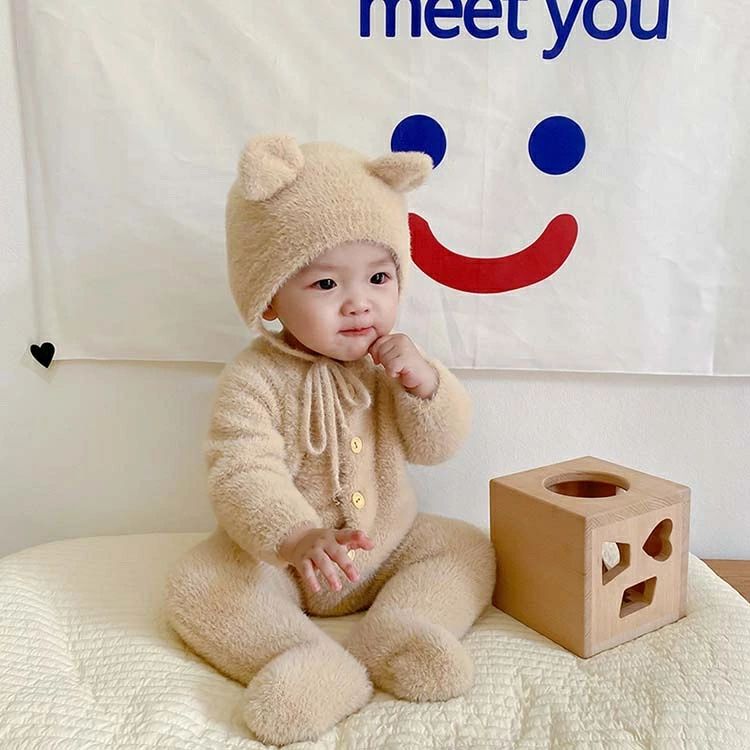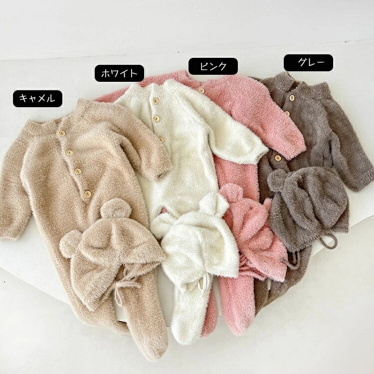 くまちゃん 着ぐるみ 熊耳 ロンパース ベビー ベビー服 ファッション カバーオール ロンパース 通販 ホワイト ピンク グレー 66 73 80 90 100