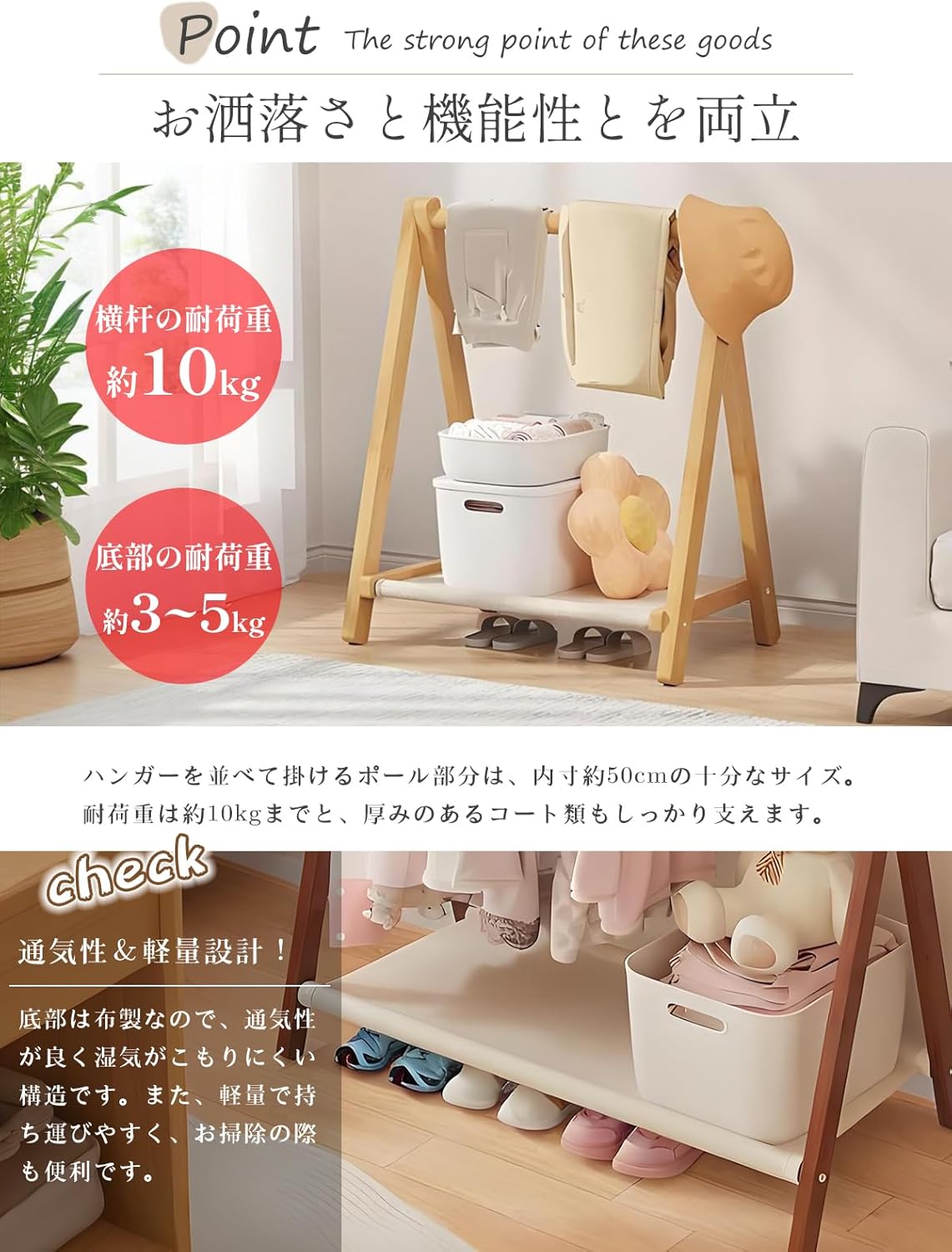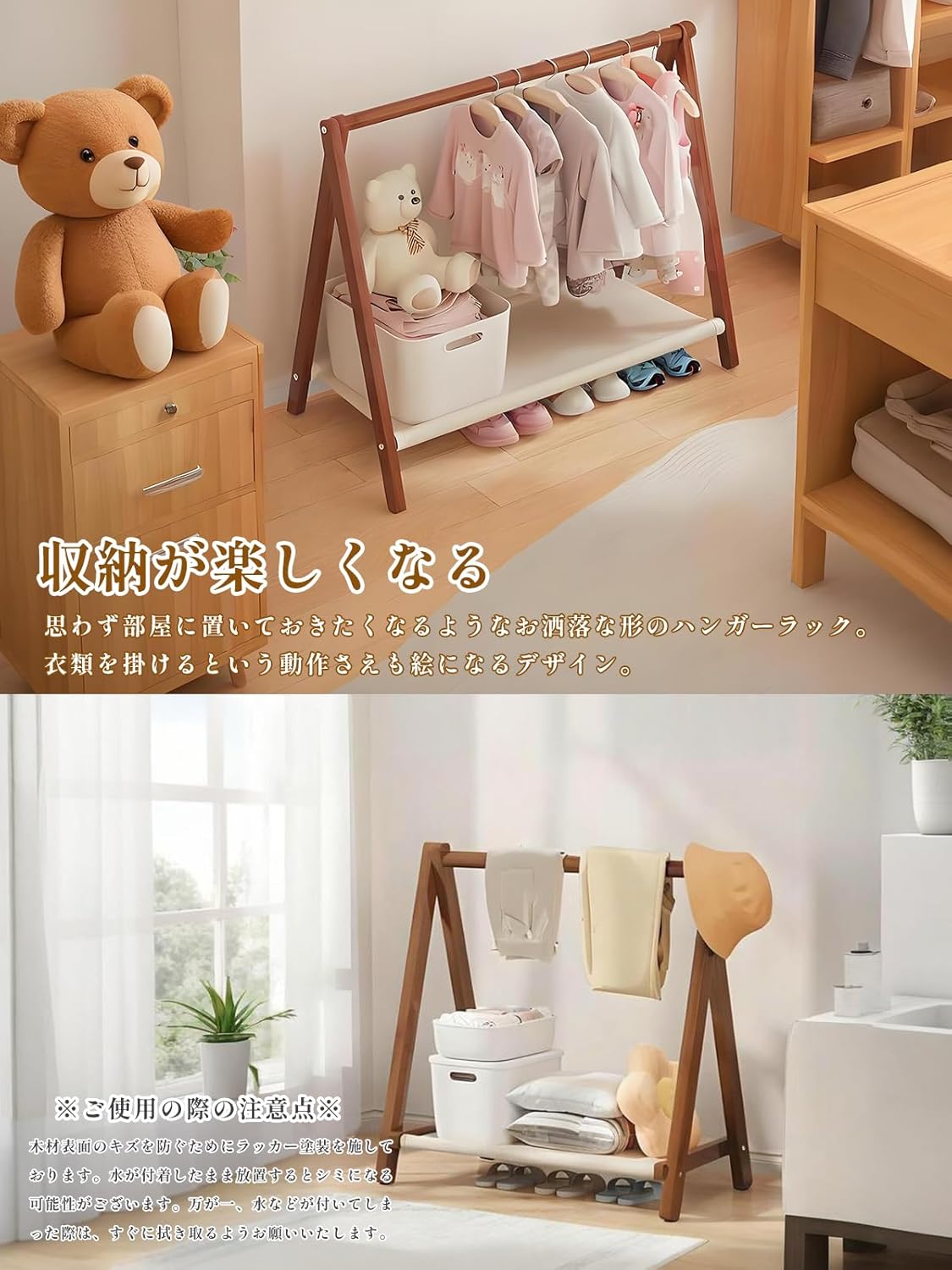 ハンガーラック 子供用 ハンガー 木製 ナチュラル ブラウン