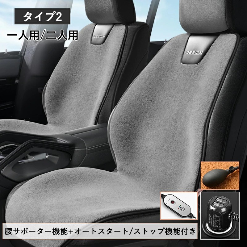 車用 シートヒーター 1人掛け 2人掛 タイプ1:一人用 タイプ1:二人用 タイプ2:一人用 タイプ2:二人用 コーヒー ブラック グレー