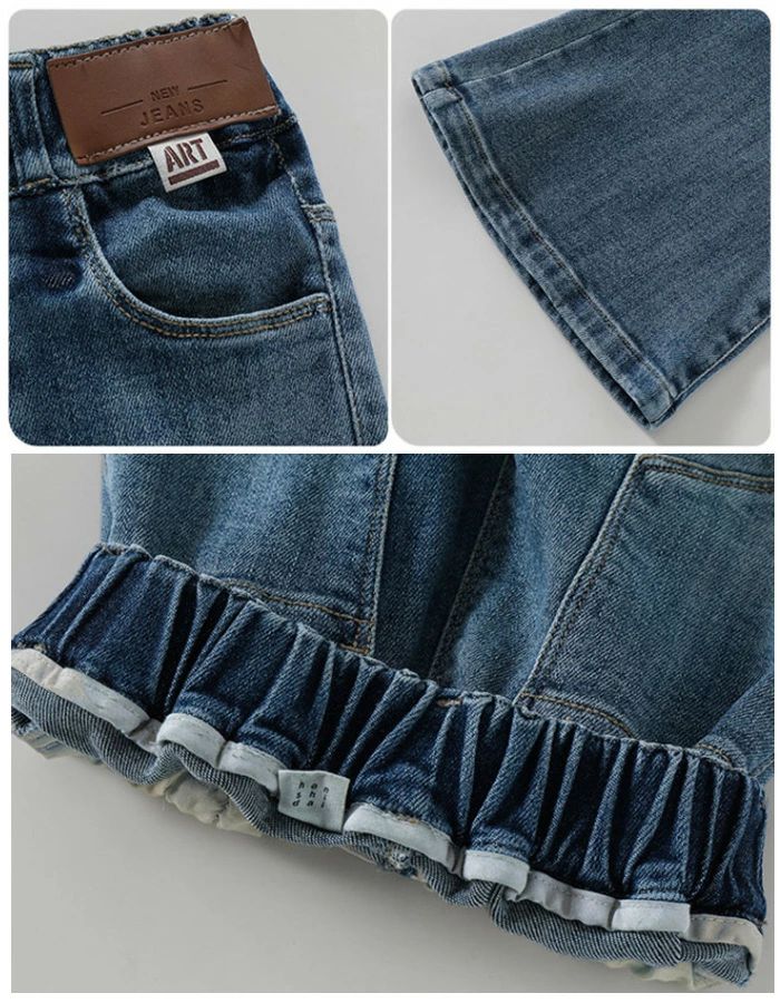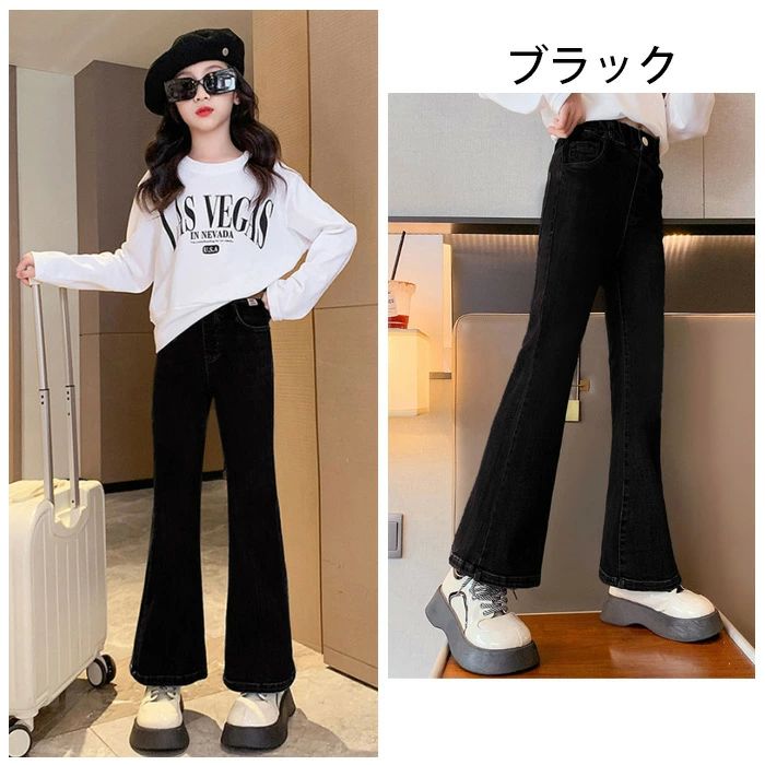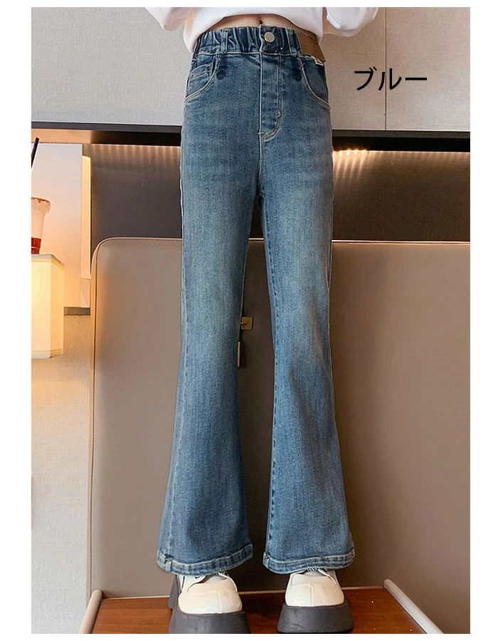 子供服 女の子 デニムパンツ お洒落 キッズ ボトムス パンツ 新作 ブラック(裏起毛なし) ブルー(裏起毛なし) ブラック(裏起毛あり) ブルー(裏起毛あり) 120 130 140 150 160 170