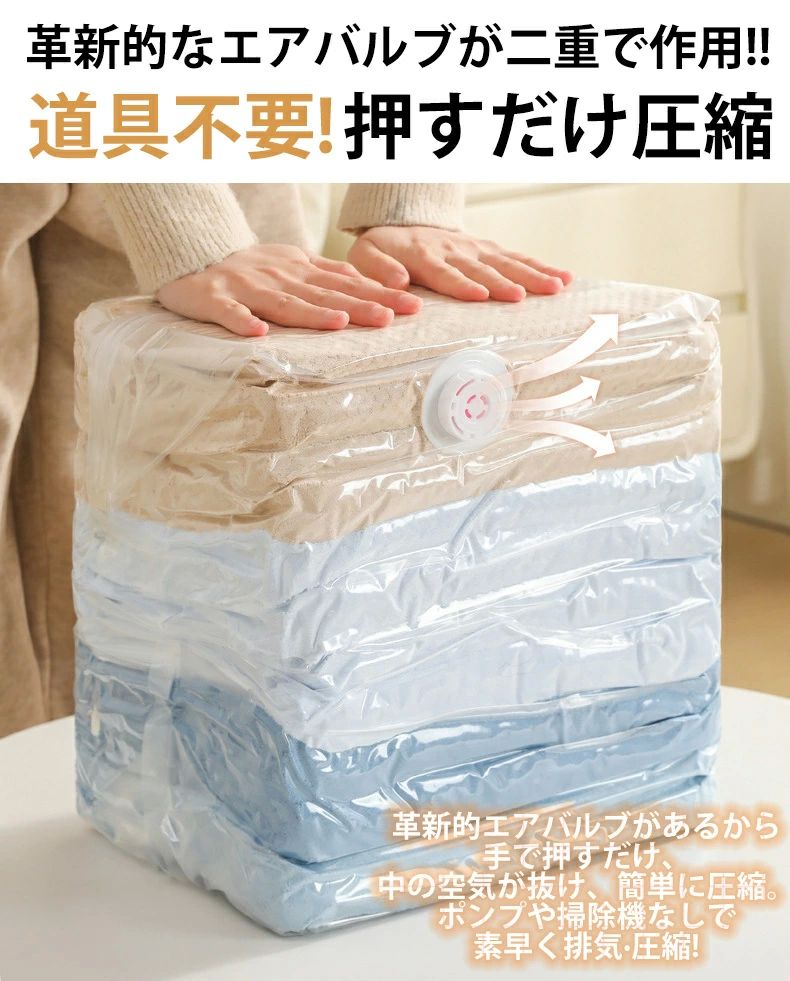 ポンプ不要 防カビ カビ対策 掃除機不要 立体圧縮袋 衣類圧縮袋 衣類ケース 収納袋 圧縮ボックス 衣類 押すだけ 圧縮袋 4サイズ