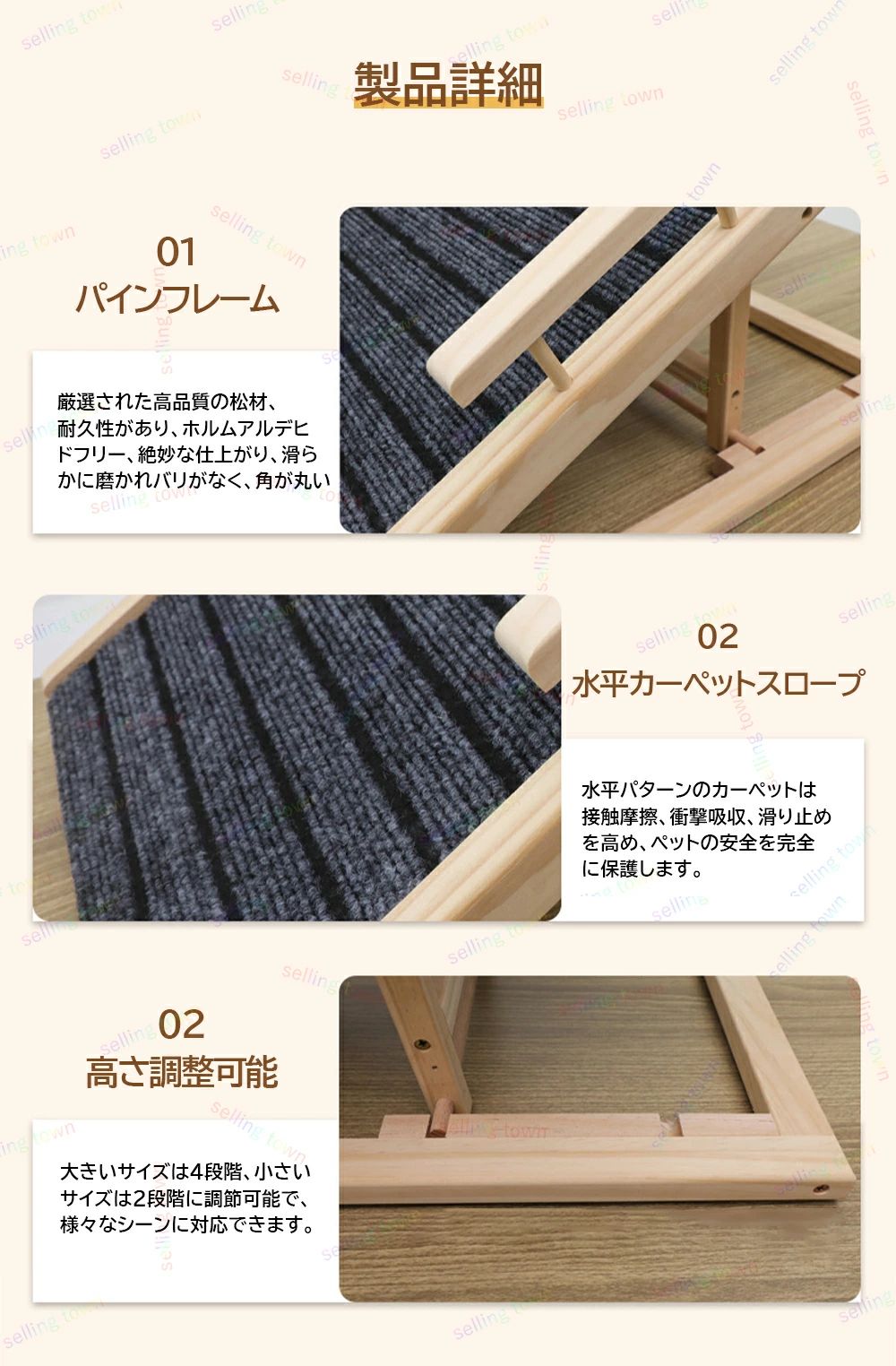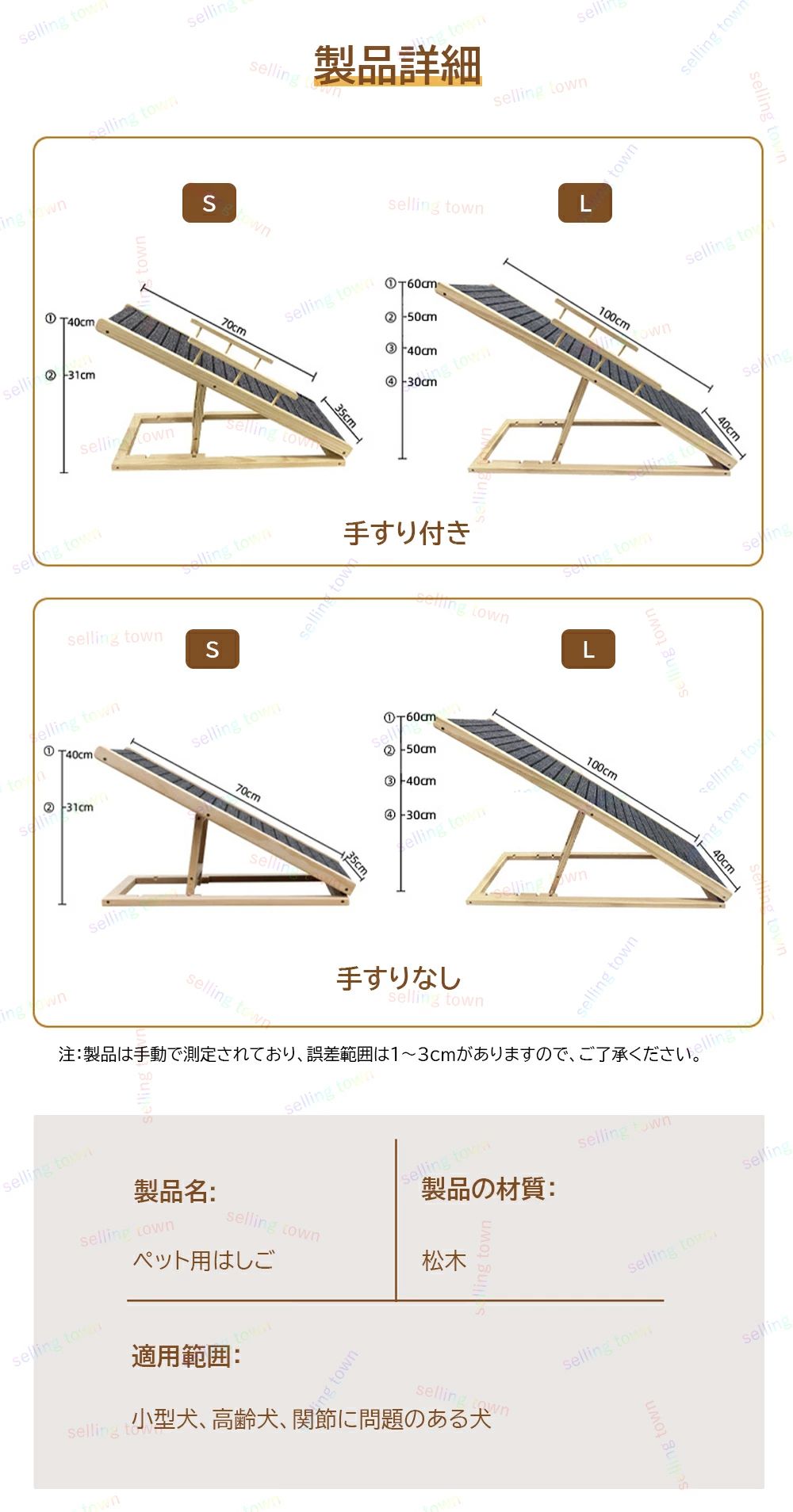 ペット用スロープ ステップ 木製 ドッ ペット ペットグッズ 特集 手すりなし 手すり付き S 70*35cm L 100*40cm