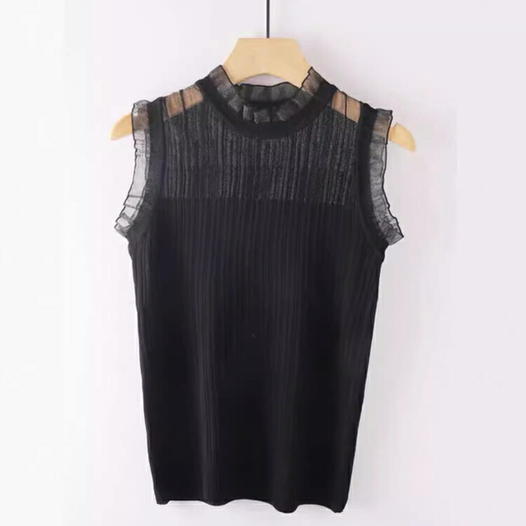 薄手 レース フリル襟 タンクトップ レディースファッション 豊富 ブラック ホワイト ベージュ S M L XL 2XL 3XL 4XL