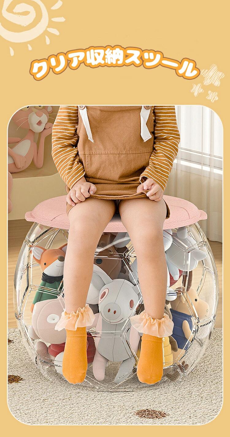 収納スツール 収納ボックス ぬいぐるみ 収納ケース 大容量 クリア 透明 ベンチ 円柱 見せる おもちゃ フタ付き 省スペース 桶 蓋付き おしゃれ 椅子 ストレージチェア 足置き 踏み台 オットマン