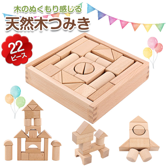 天然木つみき 22ピース 木製 積み木 おもちゃ ゲーム 続々登場