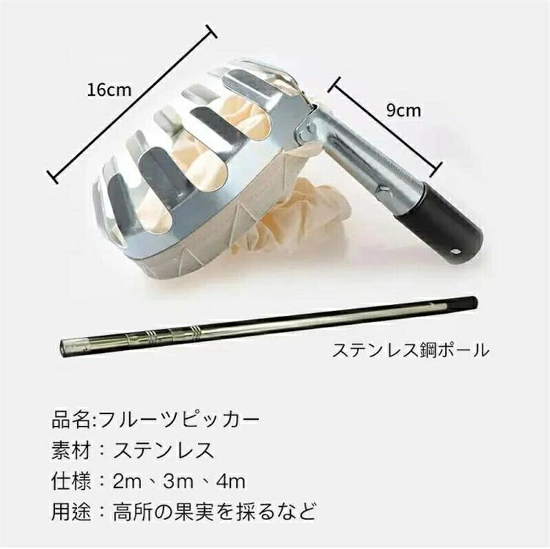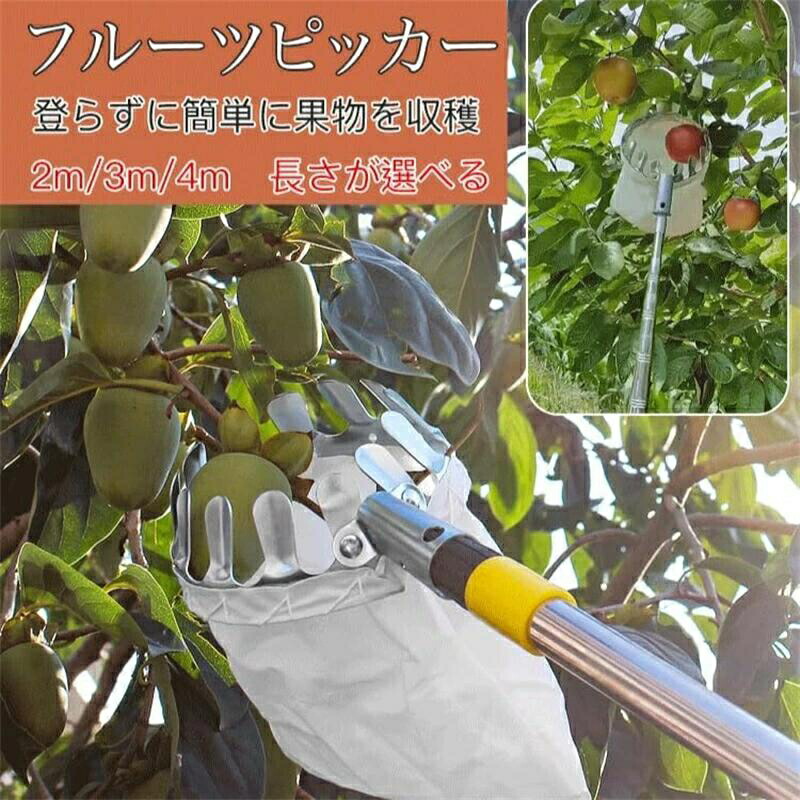 フルーツピッカー 果物取り 高枝切りば 棒(2m)+ヘッド 棒(3m)+ヘッド 棒(4m)+ヘッド 棒(5m)+ヘッド 交換用ヘッドのみ
