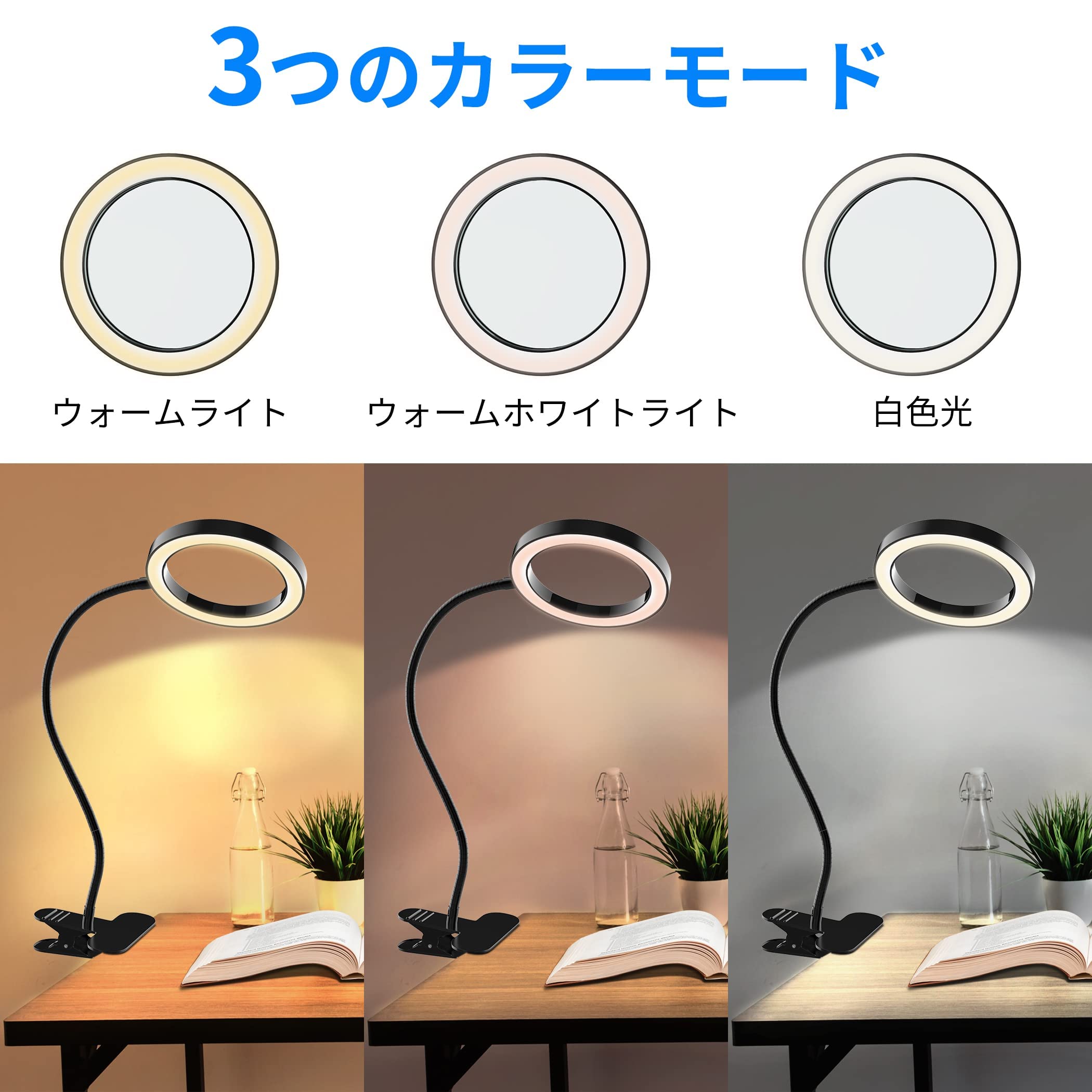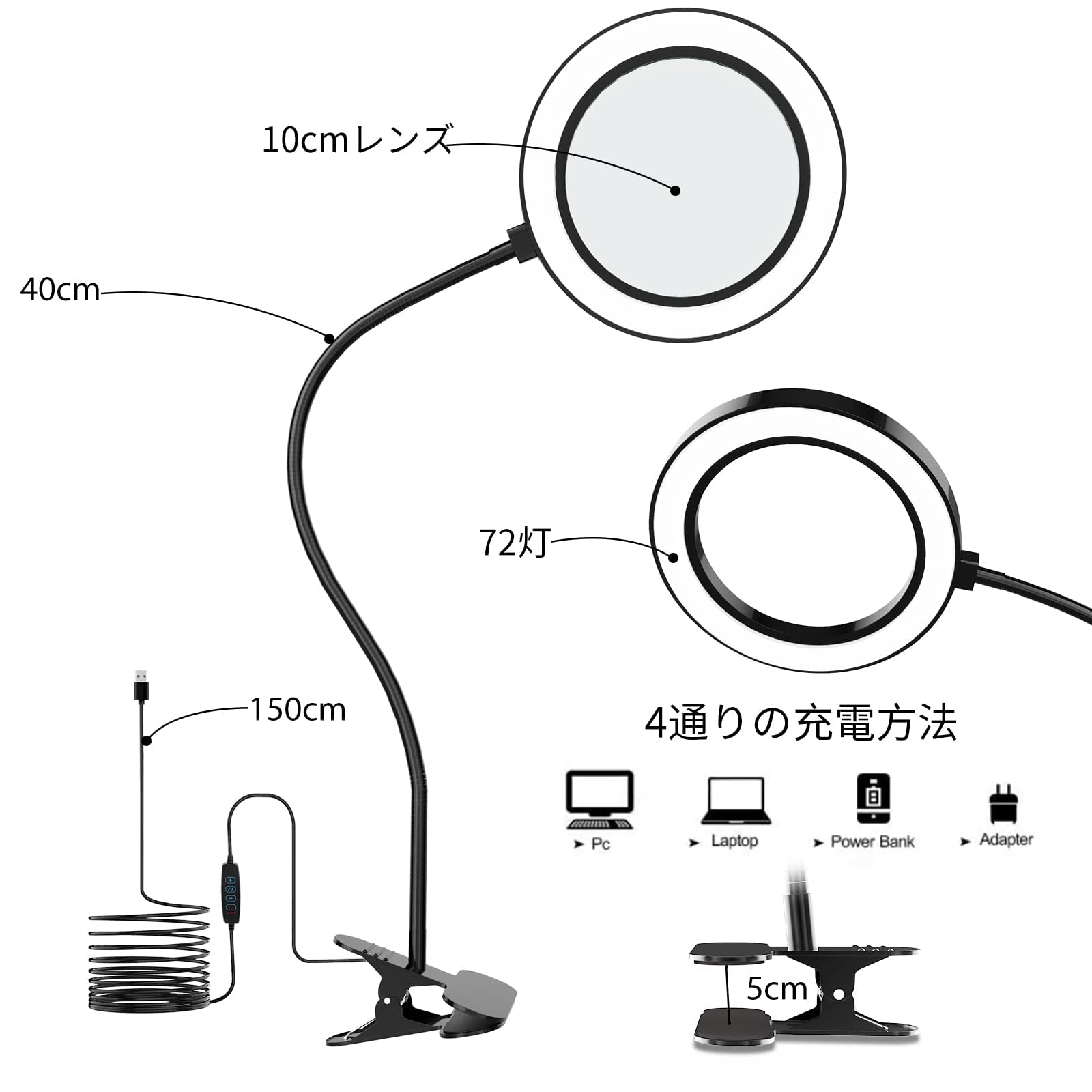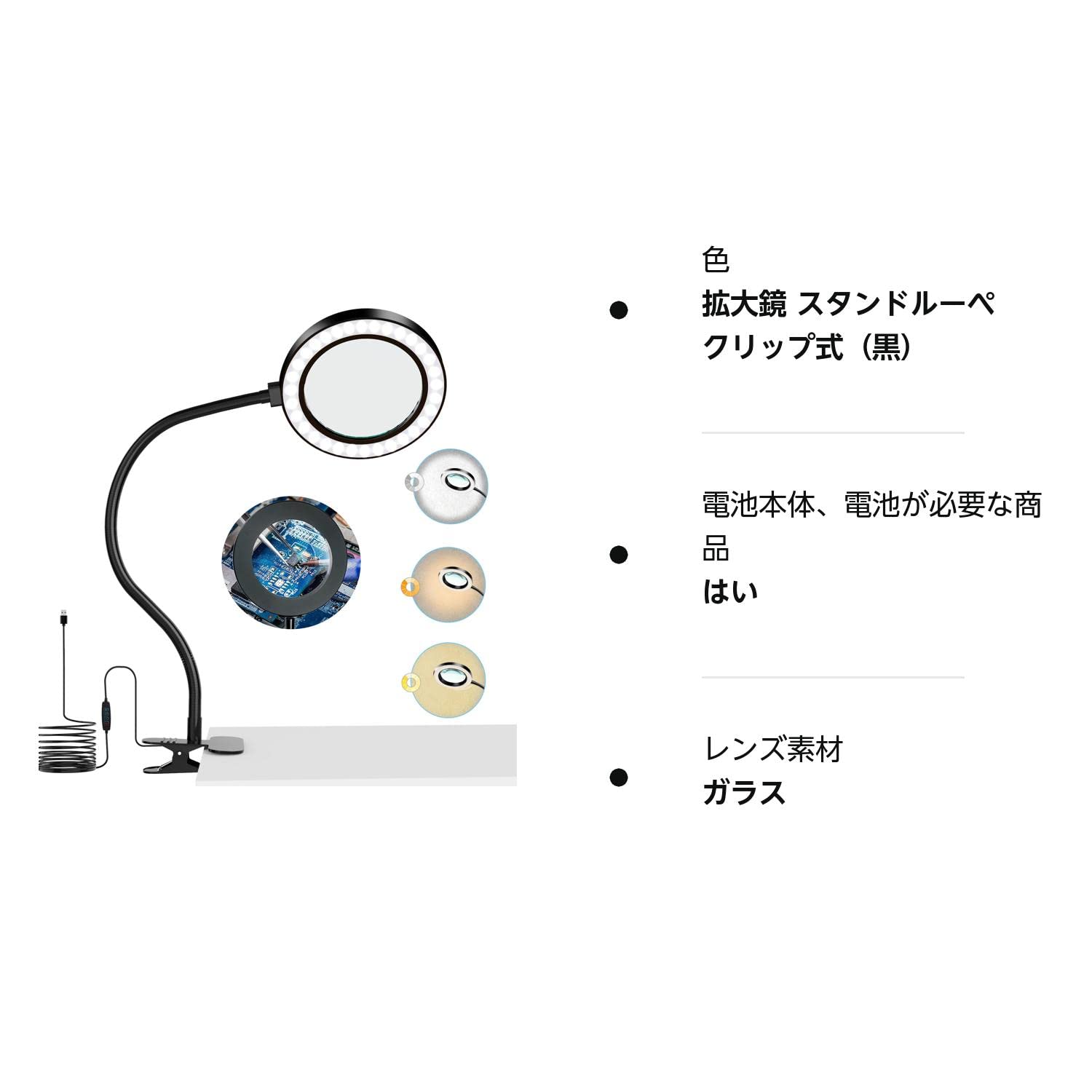 拡大鏡 スタンド ライト付きルーペ ガラス ライト付きled卓上ルーペ 8倍の倍率拡大鏡を搭載 折りたたみ式 角度調整可能 無段階調光 3種色温度 目に優しい 多用途 ブラック USB給電