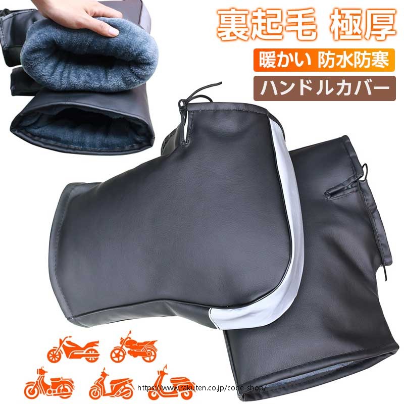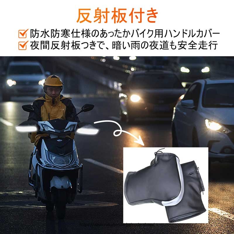ハンドルカバー バイク用 防水防寒 裏起毛 極厚 防風対策 ハンドルウォーマー PUレザー素材 反射テープ付き 色褪せない ミラー開口部調節可 防撥水 フリーサイズ オートバイ スクータ 簡単取り付け