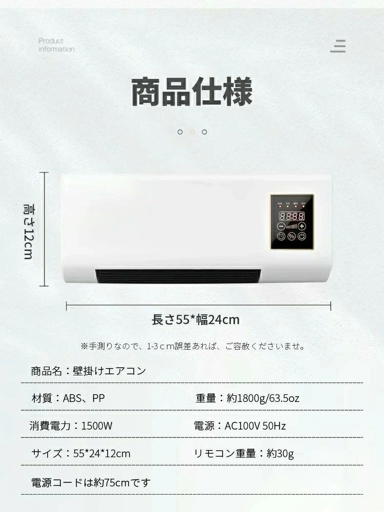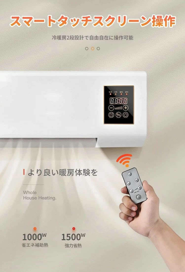壁掛け式暖房器具 電気ファンヒーター ホワイト ホワイト&花