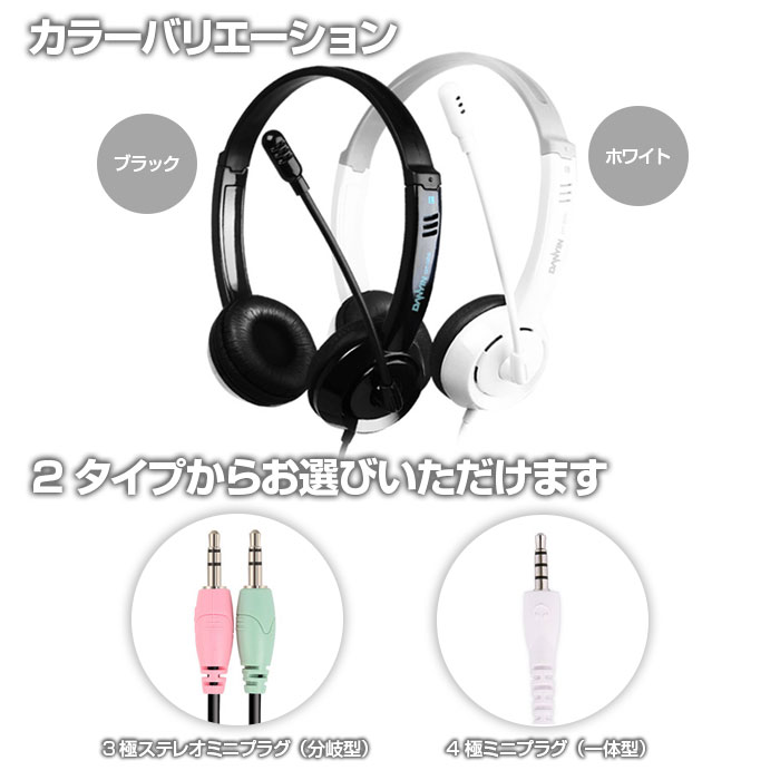 ステレオヘッドセット オンイヤー型 ヘ ブラック ホワイト 3極ステレオミニプラグ(分岐型) 4極ミニプラグ(一体型)