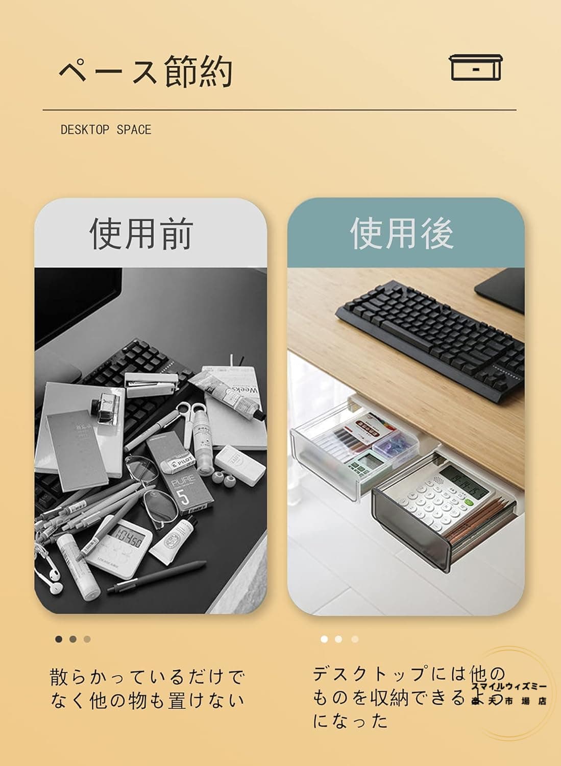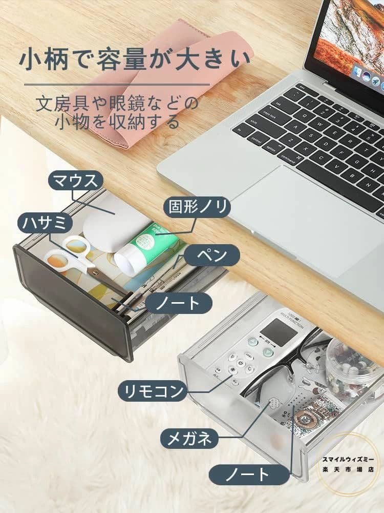 引き出し 後付け デスク 2点セット ブラック ホワイト M:20*17*7.2cm L:20*23*7.2cm