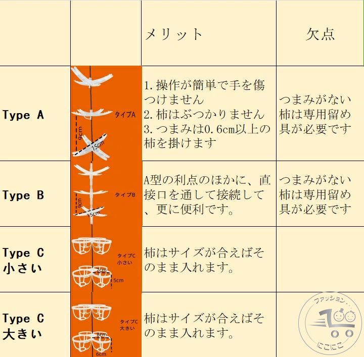干し柿ハンガー 5段 大型柿OK 干柿 タイプ A タイプ B タイプC 小さい タイプ C 大きい つまみがない柿の専用留め具