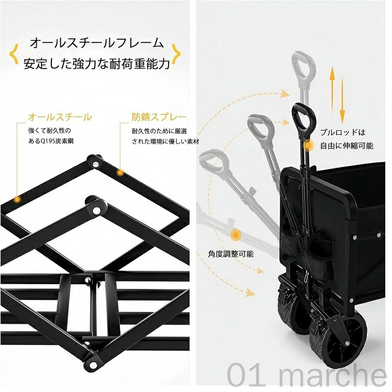 キャリーワゴン アウトドアワゴン 折り ブラック カーキ