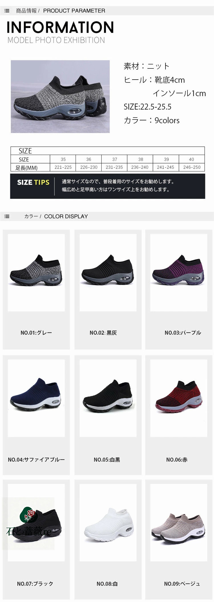 レディース スニーカー 厚底 ウォーキ レディース靴 スニーカー 通販 NO.01:グレー NO.02:黒灰 NO.03:パープル NO.04:サファイアブルー NO.05:白黒 NO.06:赤 NO.07:ブラック NO.08:白 NO.09:ベージュ 35/22.5 36/23 37/23.5 38/24 39/24.5 40/25 41/25.5 42/26 43/26.5