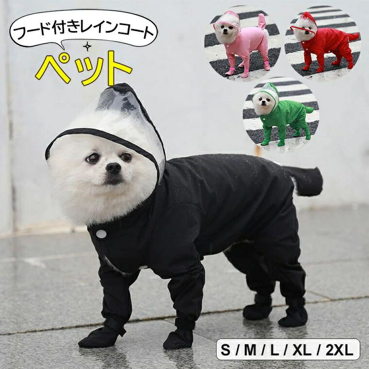 しっぽまで全身カバー ♪4色展開 2枚 犬用品 ドッグウェア レインコート 続々入荷中 グリーン(2枚) ピンク(2枚) レッド(2枚) ブラック(2枚) S M L XL 2XL