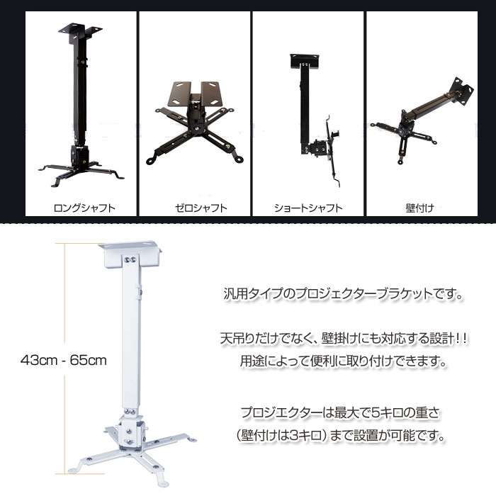 プロジェクター ブラケット 汎用 マウ ホワイト ブラック