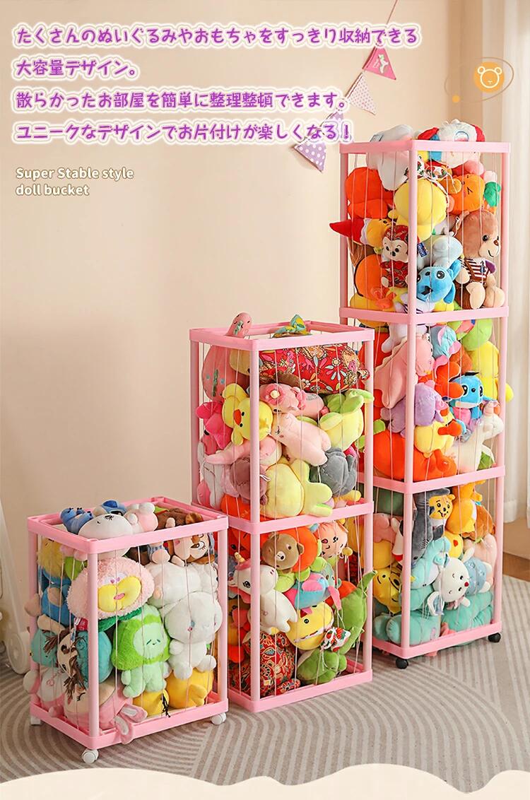 ぬいぐるみ 収納 ラック 大容量 収納 ベージュ ピンク 1層 2層 3層