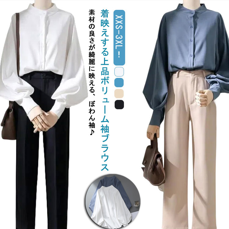 バルーン袖 レディース 長袖 きれいめ レディースファッション 続々登場 ブルー ホワイト ベージュ ブラック XXS XS S M L XL 2XL 3XL