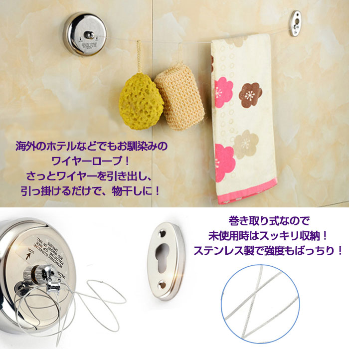 室内用 物干しワイヤーロープ 巻き取り 日用品雑貨 文房具 手芸 特集