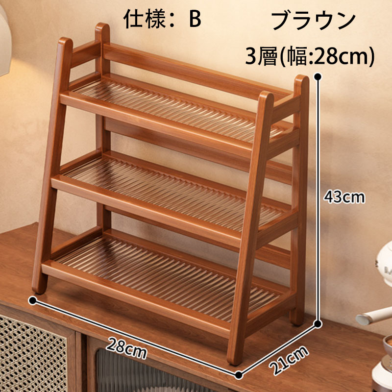 キッチンラック コップホルダー 収納棚 A B ブラウン 原色