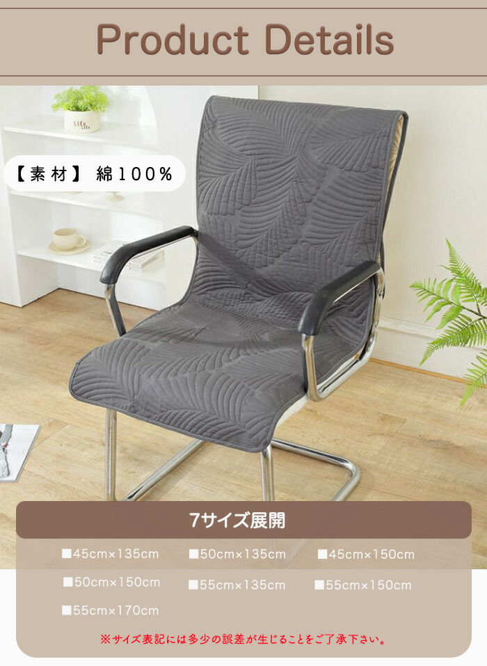 オフィス椅子カバー チェアカバー デス チャコール ピンク ライトブルー グレー ベージュ ホワイト 45x135cm 50x135cm 45x150cm 50x150cm 55x135cm 55x150cm 55x170cm