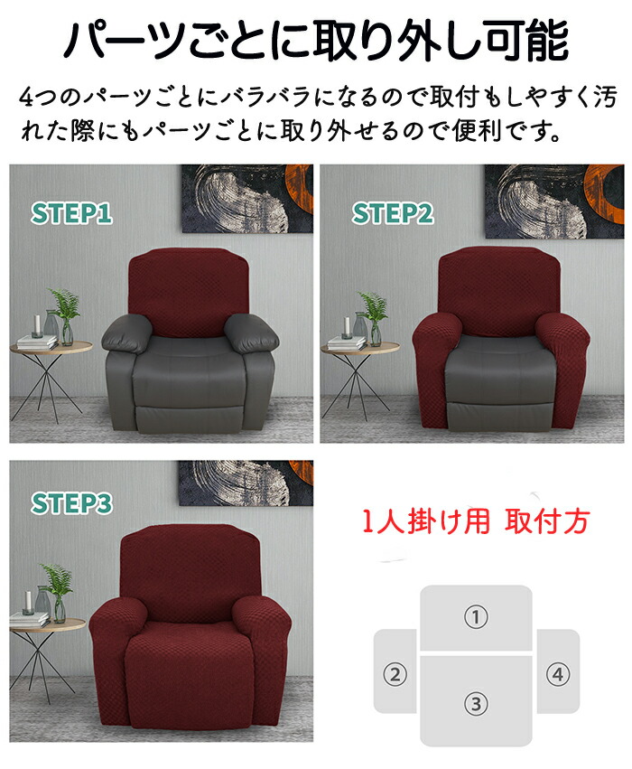 ソファーカバー リクライニングチェアカ ブラック ワインレッド カーキグリーン グリーン グレー チャコール ブラウン アイボリー ネイビー ライトブルー ホワイト オレンジ 1人掛け 2人掛け 3人掛け