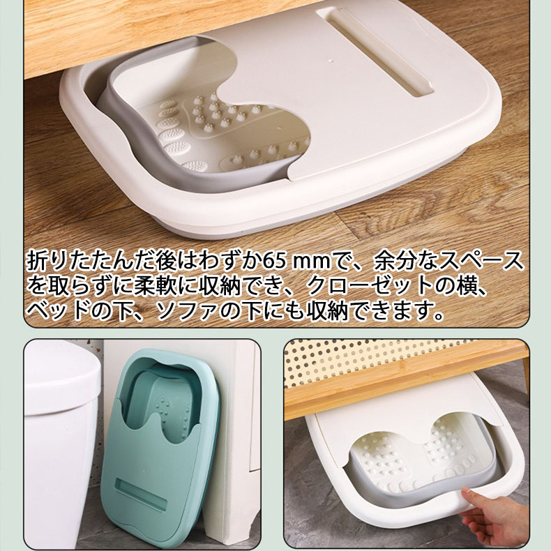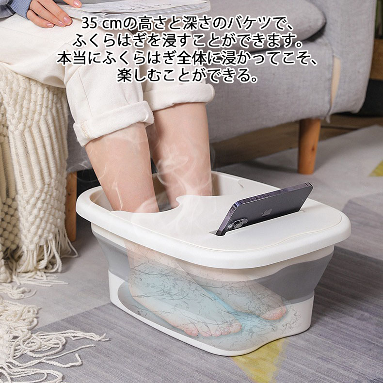 この折りたたみ式フットバスは、手軽に自宅でリラックスタイムを楽しむことができます。