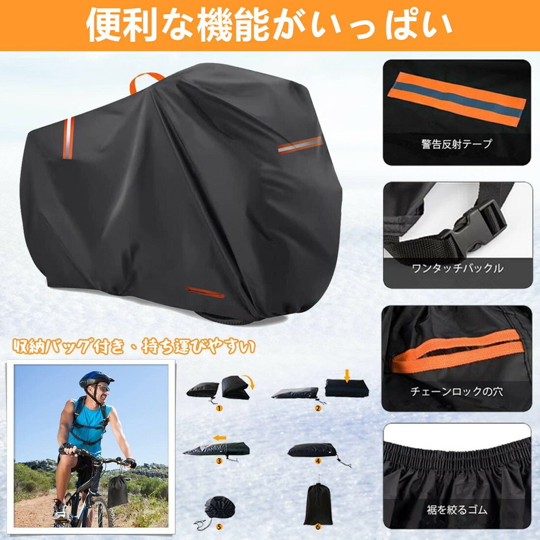 自転車カバー 420Dオックス 超厚手 ブラック シルバー