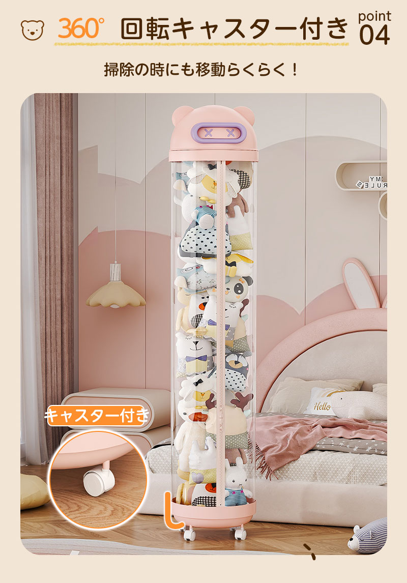 ぬいぐるみ 収納 ジッパータイプ 透明 クリーム ピンク 115cm 145cm 175cm