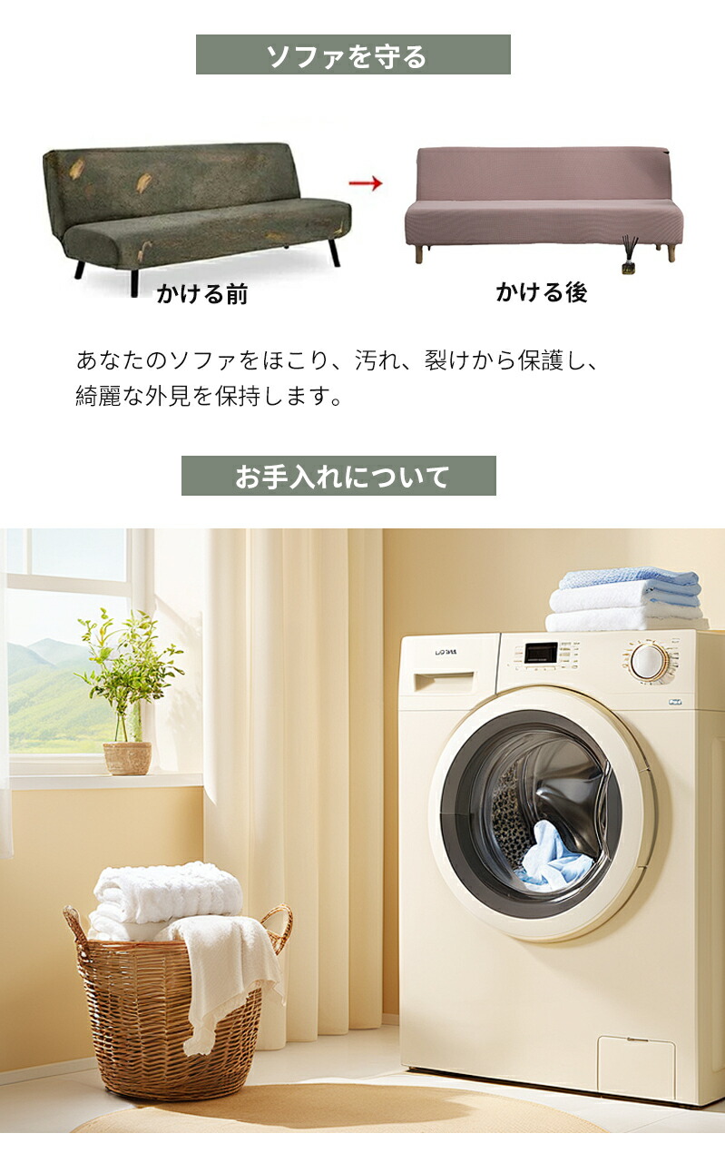 ソファーカバー 3人掛け ストレッチソファーカバー ソファーベッド 肘なし ソファカバー 1人掛け 2人掛け 北欧風 滑り止め付き 洗濯可能 120~210cm ソファーベッドカバー 伸縮 ストレッチ