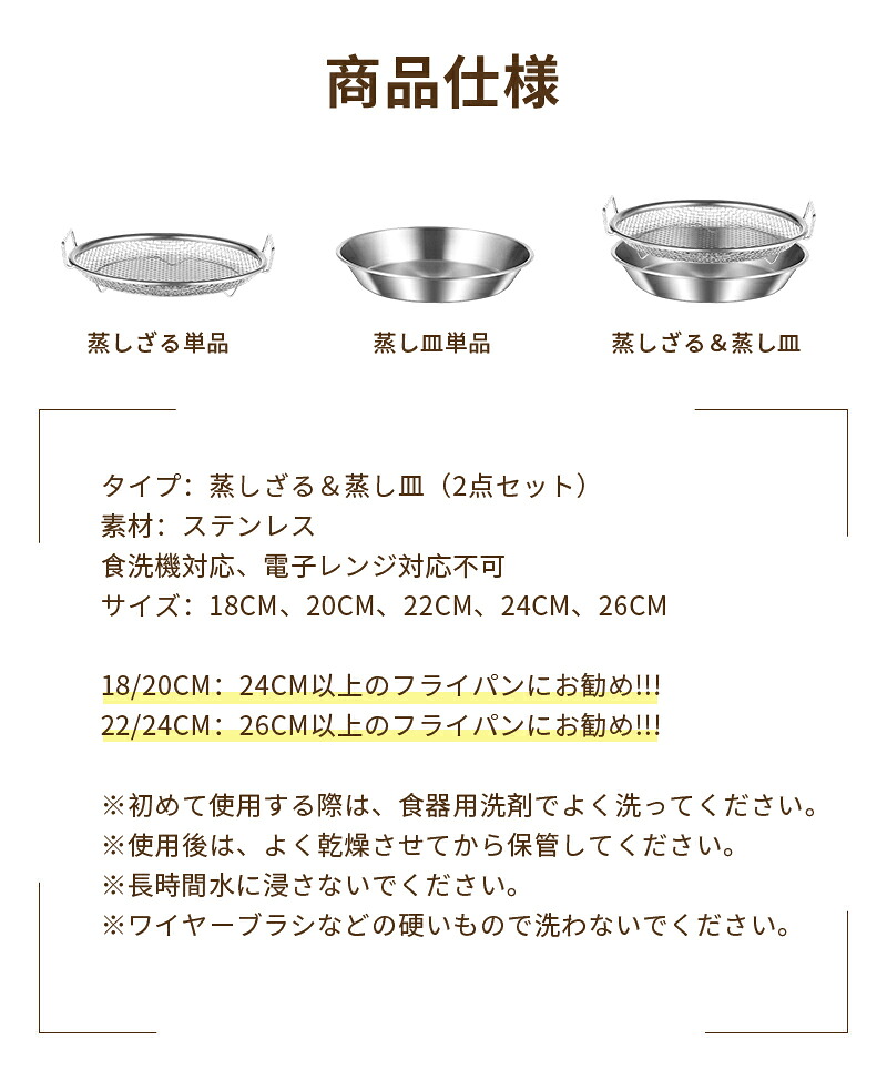 蒸しざる ステンレス皿 蒸しかご 2点 調理 製菓道具 調理器具 蒸し器 通販 18cm 20cm 22cm 24cm 26cm