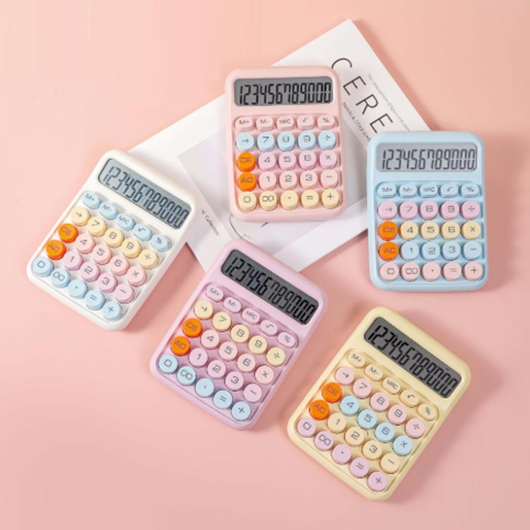 電卓 12桁 可愛い カラフル電卓 シ パープル ホワイト ブルー イエロー ピンク