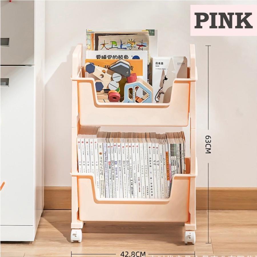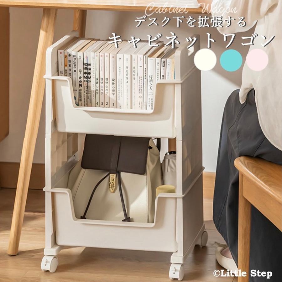 デスクワゴン キャスター スリム マガ ホワイト ブルー ピンク