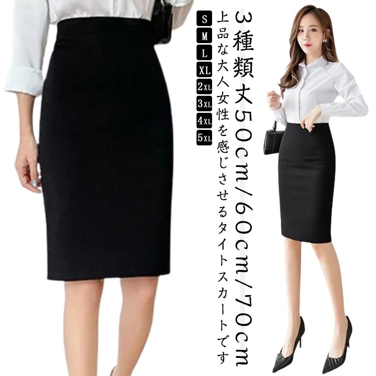3種類 タイトスカート ひざ丈 オフィ 事務服 スカート 続々登場 黒丈スカート50cm 黒スカート丈60cm 黒スカート丈70cm S M L XL 2XL 3XL 4XL 5XL