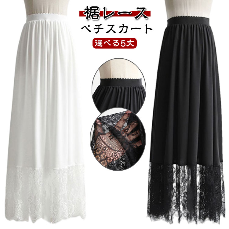 重ね着 インナー 裾レース 透けない インナー 下着 ナイトウエア 特集 ホワイト ブラック 長さ85cm 長さ90cm 長さ95cm 長さ100cm 長さ105cm