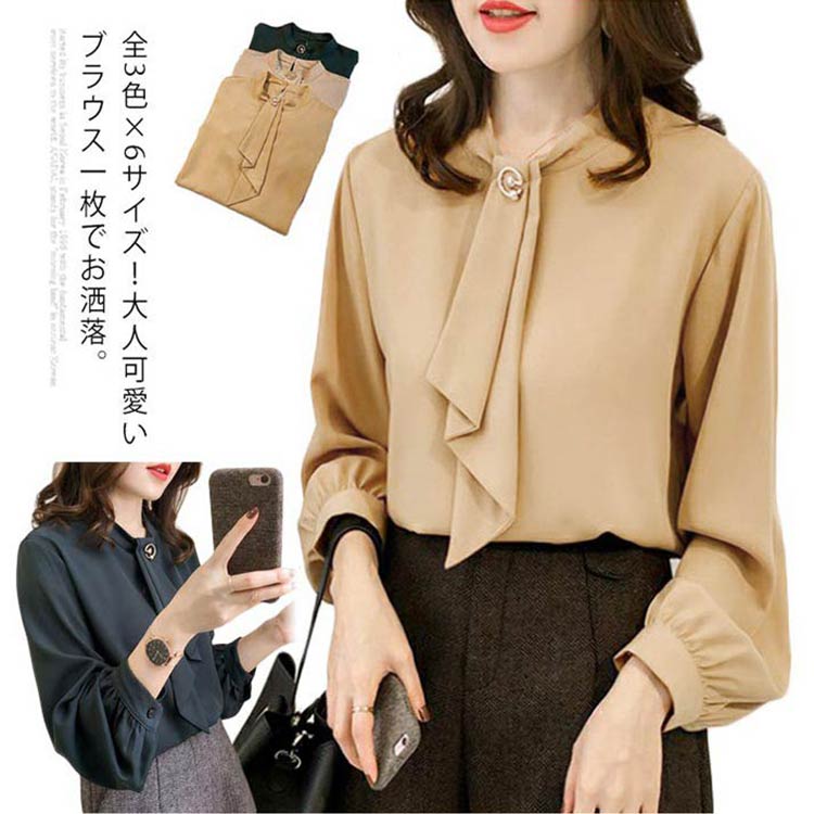 ブラウス レディース トップス 胸元飾 トップス シャツ ブラウス 超目玉商品 ダークグリーン ベージュ イエロー M L XL 2XL 3XL 4XL