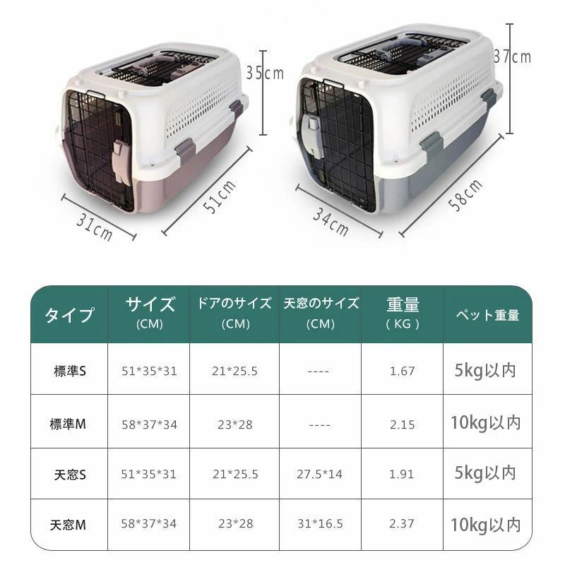 犬 キャリーケース ダブルドア ペット グリーン グレー パープル 標準S:50*34*30 標準M:57*37*33 天窓S:50*34*30 天窓M:57*37*33