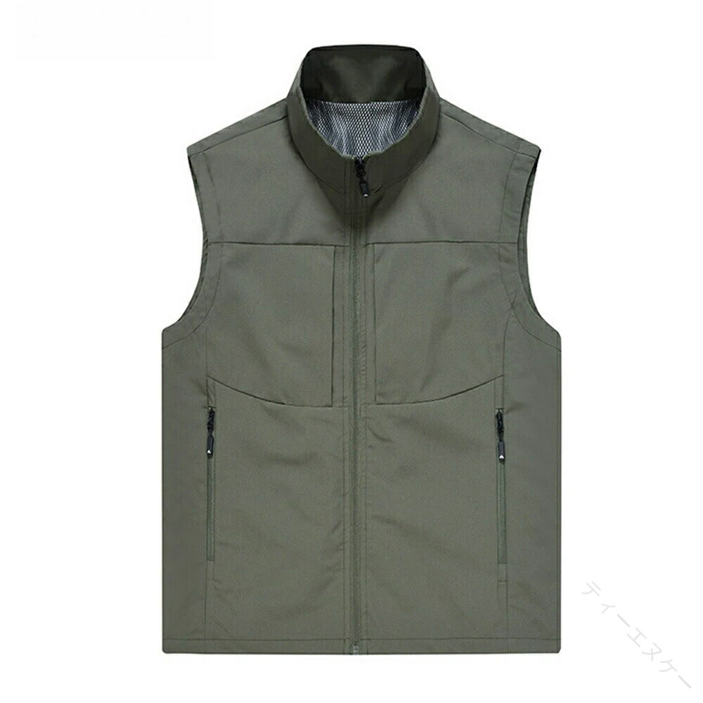 メンズ ベスト 春夏 サマーベスト ゴルフ ポケット 多い 通気 軽量 薄手 立ち襟 おしゃれ かっこいい カジュアルベスト 夏ベスト トップス 普段着 ミリタリー ワーク服 大きいサイズ 作業着