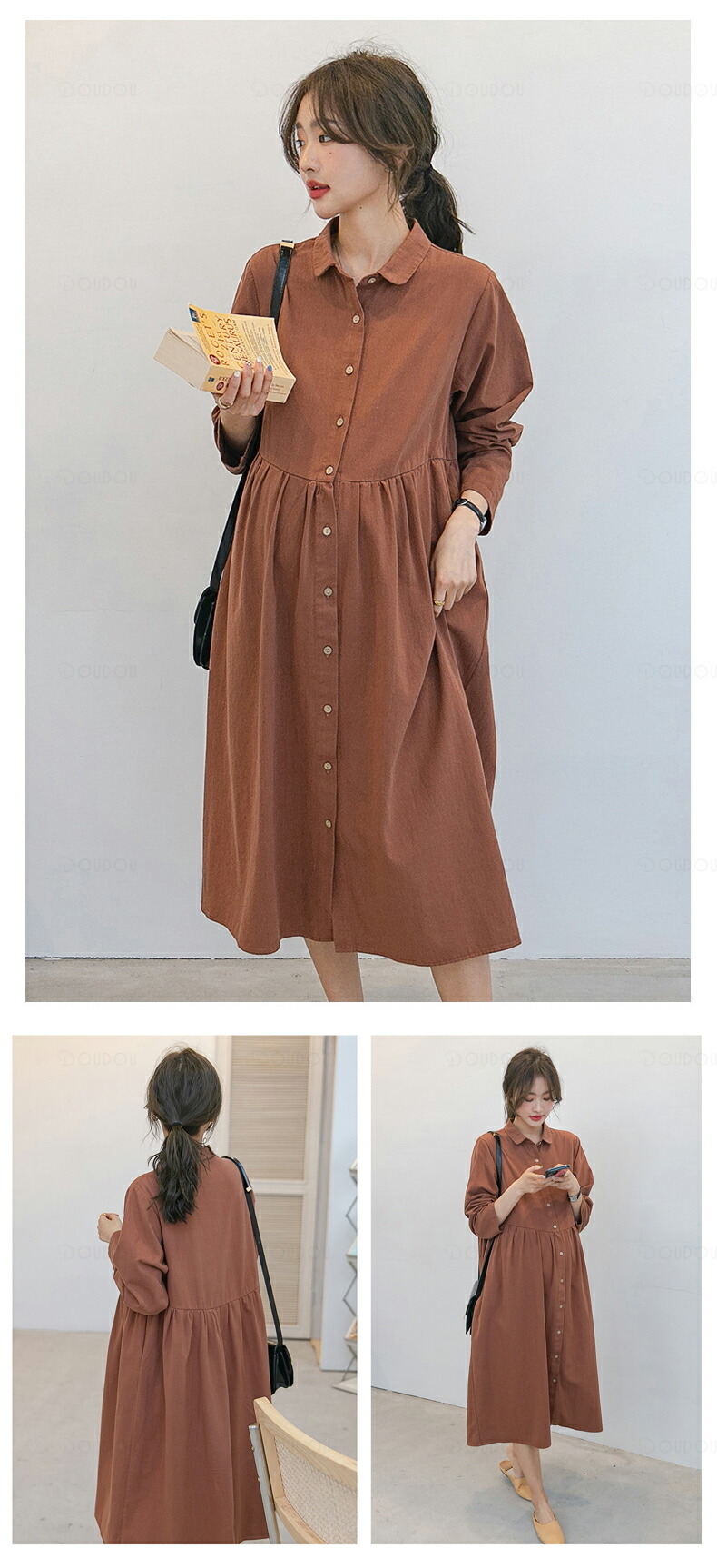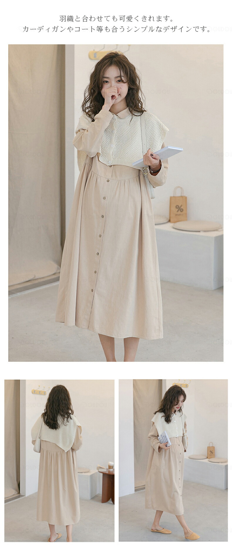 マタニティ ワンピース 秋冬 オフィス マタニティ ママ マタニティウエア 授乳服 ワンピース 通販 ブラウン エクリュ