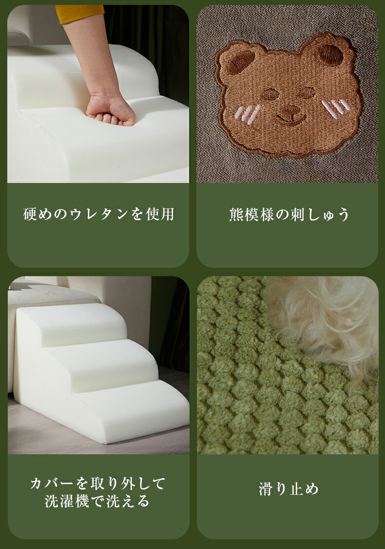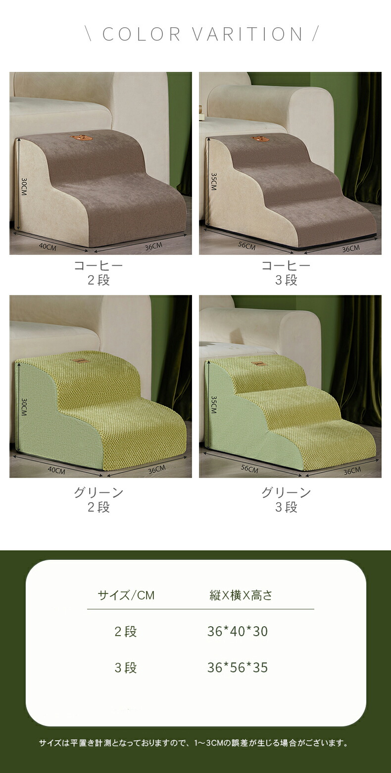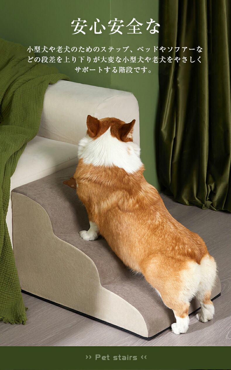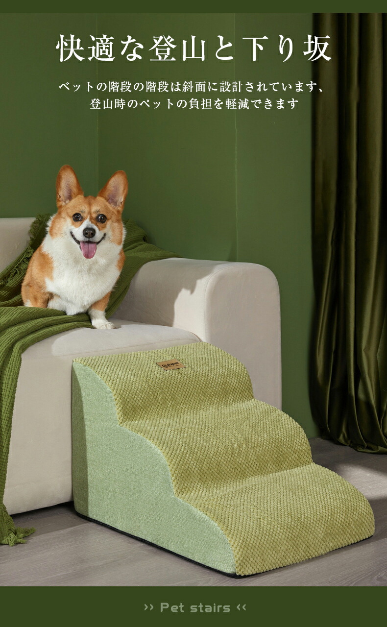 ペット用品 ペットステップ 3段 犬踏 犬用品 介護用品 スロープ ステップ 人気 2段 3段 コーヒー グリーン
