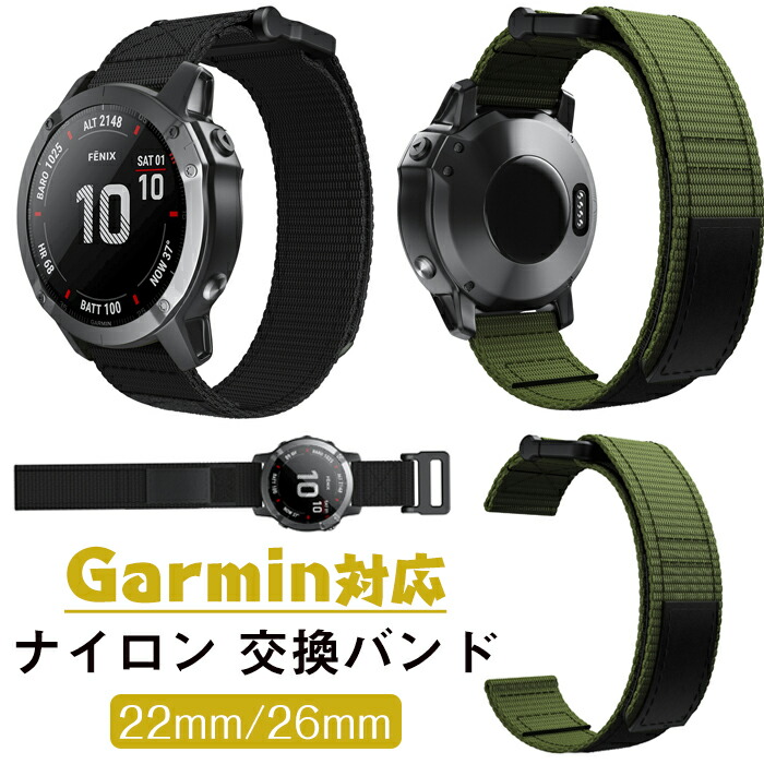 Garmin Fenix 7X Pro 5X 対応 バンド 交換ベルト ナイロン製 柔らかい 通気性に優れ 防水 耐汗性 マジックテープ サイズ調節可能 時計ベルド 替えベルド 22mm、2 交換簡単