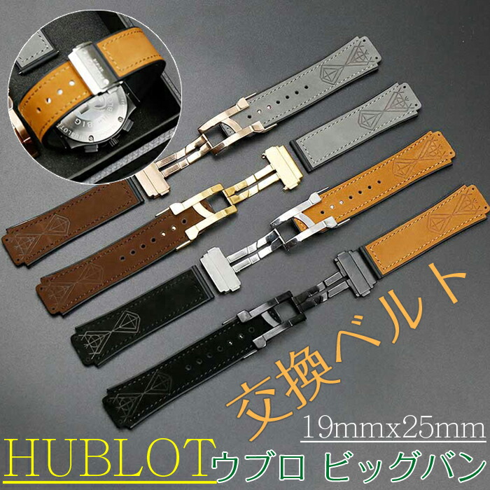 ウブロビッグバン 対応 腕時計バンド 時計ストラップ レザーバンド 内側シリコン製 耐久性 ステンレスバックル 19mmx25mm 交換バンド